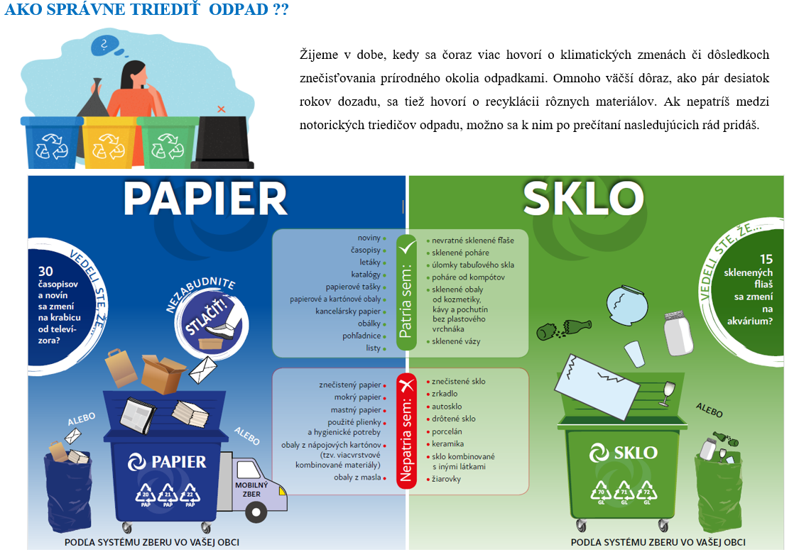 K správnemu triedeniu Vám pomôže plagát (viď príloha), ktorý vypracovala OZV NATUR-PACK ako jednu zo svojich vzdelávacích aktivít. Ďalšie informácie nielen o triedení odpadu nájdete na https://www.naturpack.sk.