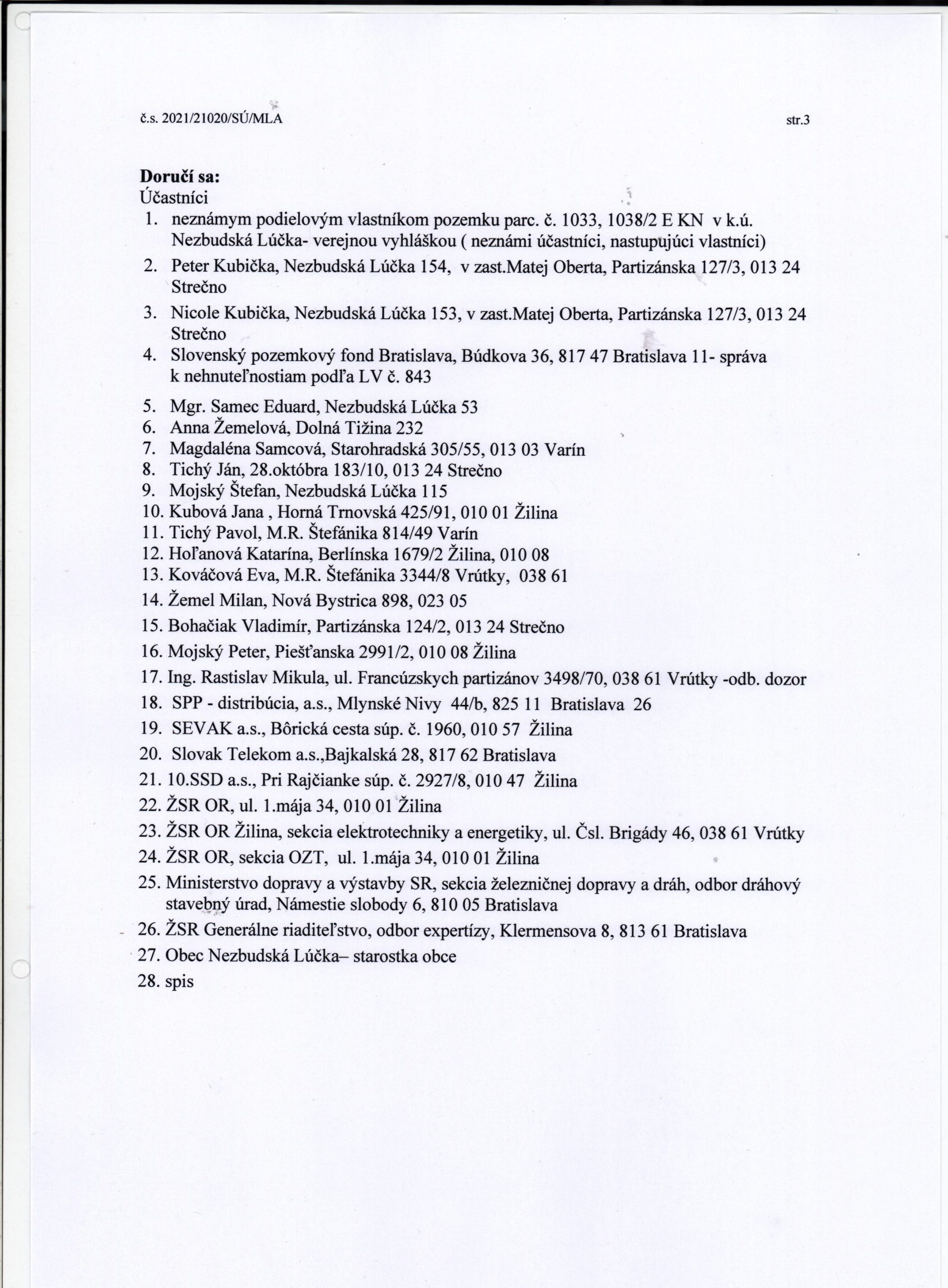 v zastúpení Matej Oberta, Červeňanského 1569/83A, 014 01 Bytča