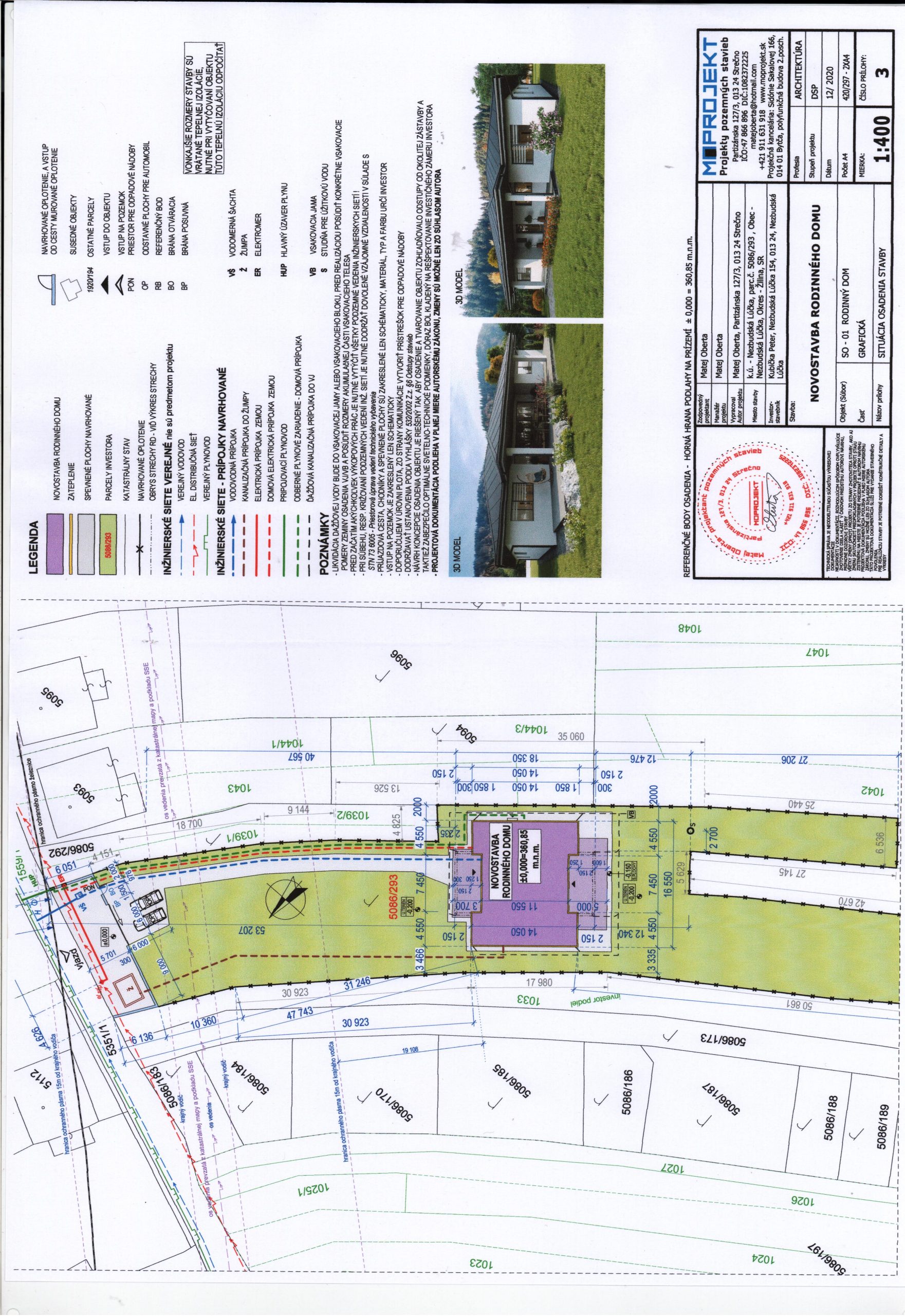 stavba : Novostavba rodinného domu, prípojky inžinierskych sietí, žumpa, oplotenie, vsakovacia šachta, studňa pre úžitkovú vodu a vjazd